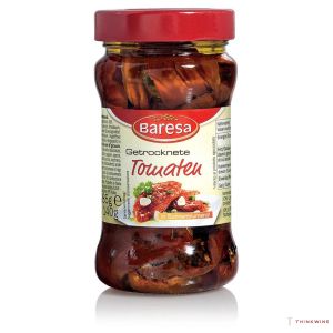 Baresa Pomodori secchi - итальянские вяленые помидоры в растительном масле с КАПЕРСАМИ. Вяленые помидоры в масле являются органическим продуктом. Помидоры собирают при максимальной зрелости. Самые красивые промывают, высушивают и режут пополам, после чего их располагают на больших подносах и поддают воздействию солнца. Впоследствии помидоры солят, покрывают сеткой для защиты и оставляют на солнце в течение четырех-пяти дней . Они вкусны сами по себе, изумительны в выпечке, оригинальны в салатах, привлекательны в закусках. Также идеально подходят для приготовления пасты, пиццы и других блюд.
